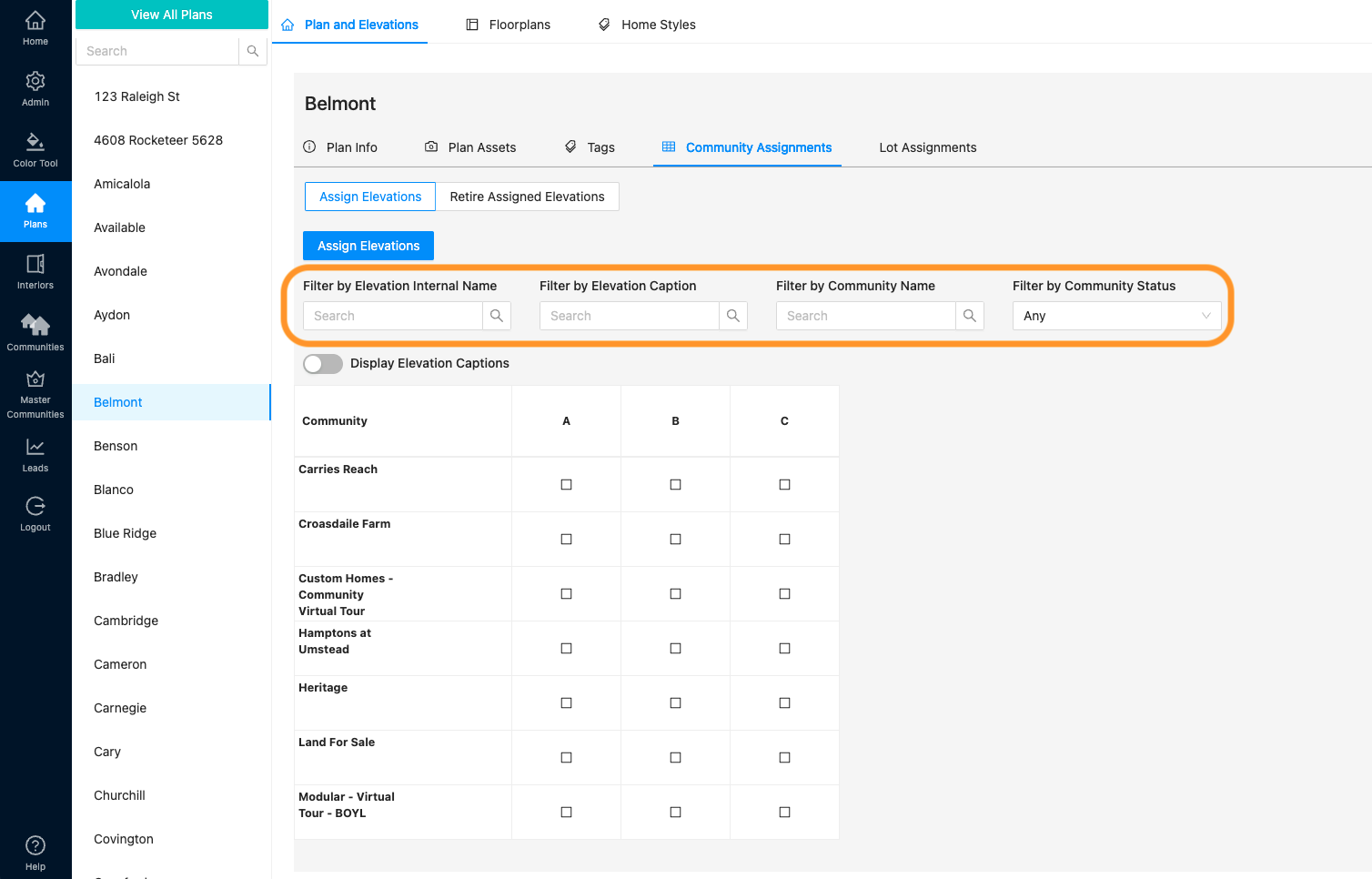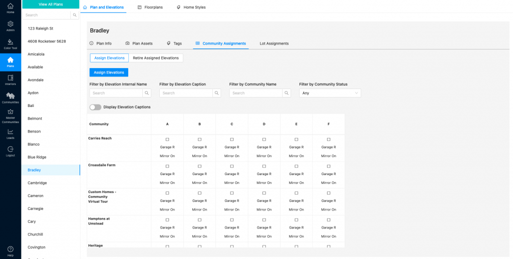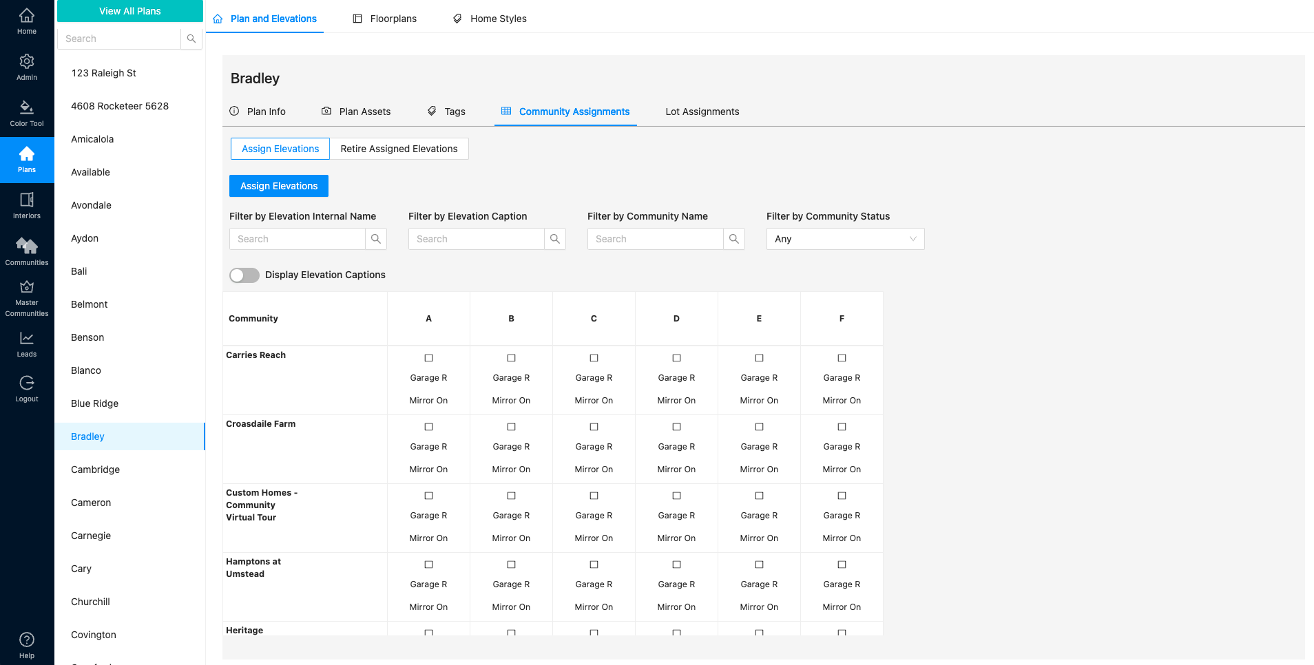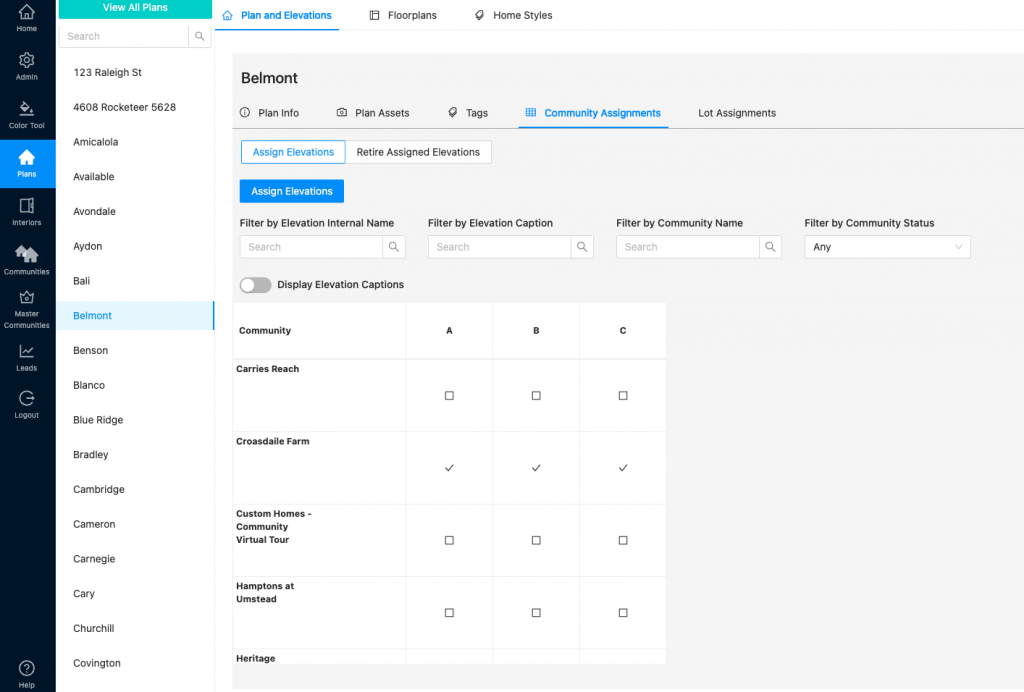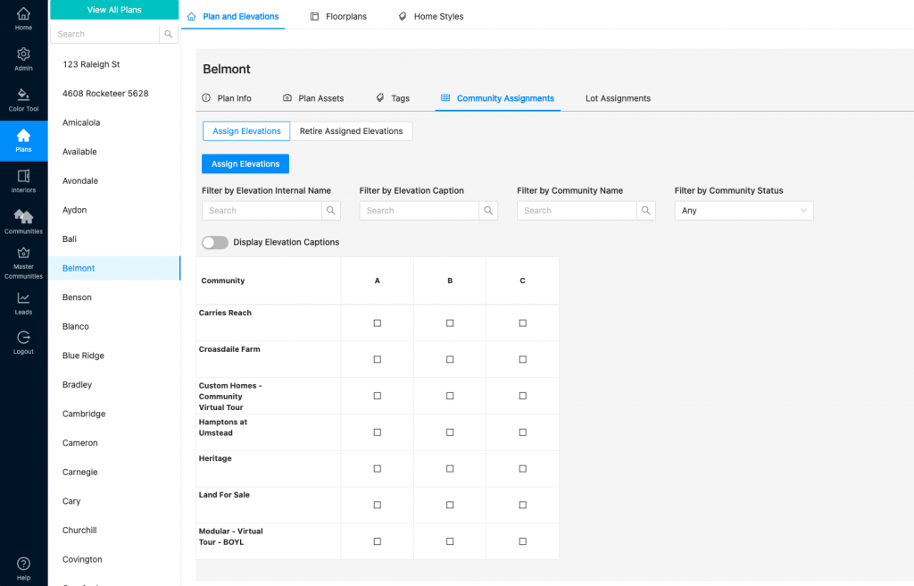 12. Your plans/elevations are now assigned to those communities. They will appear in those communities in the front end of both the My Home and Sales Center Apps.