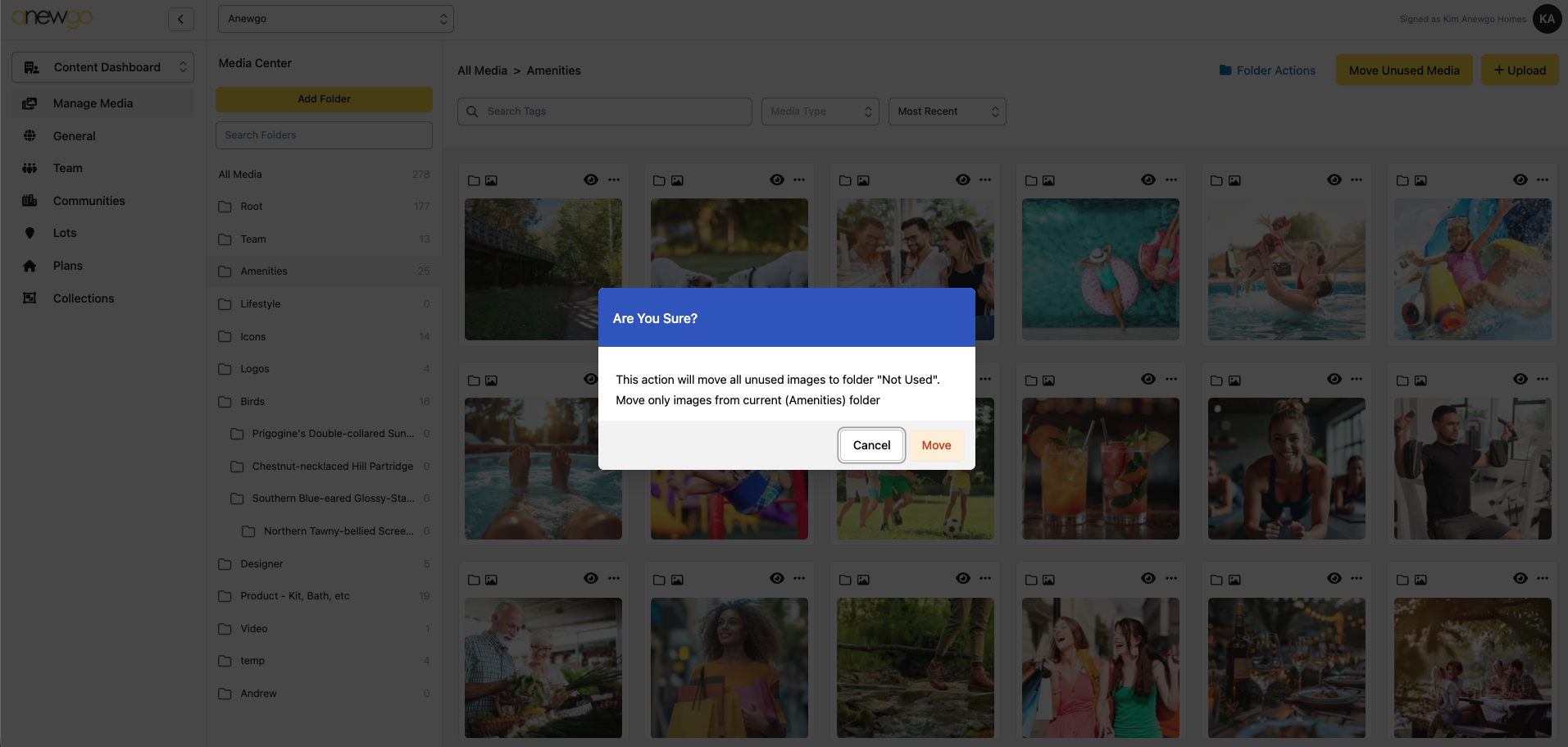 7. Need to clean up any unused media? Click the Move Unused Media button. This will open a confirmation window where you can choose to Cancel or Move unused images to a “Not Used” folder.