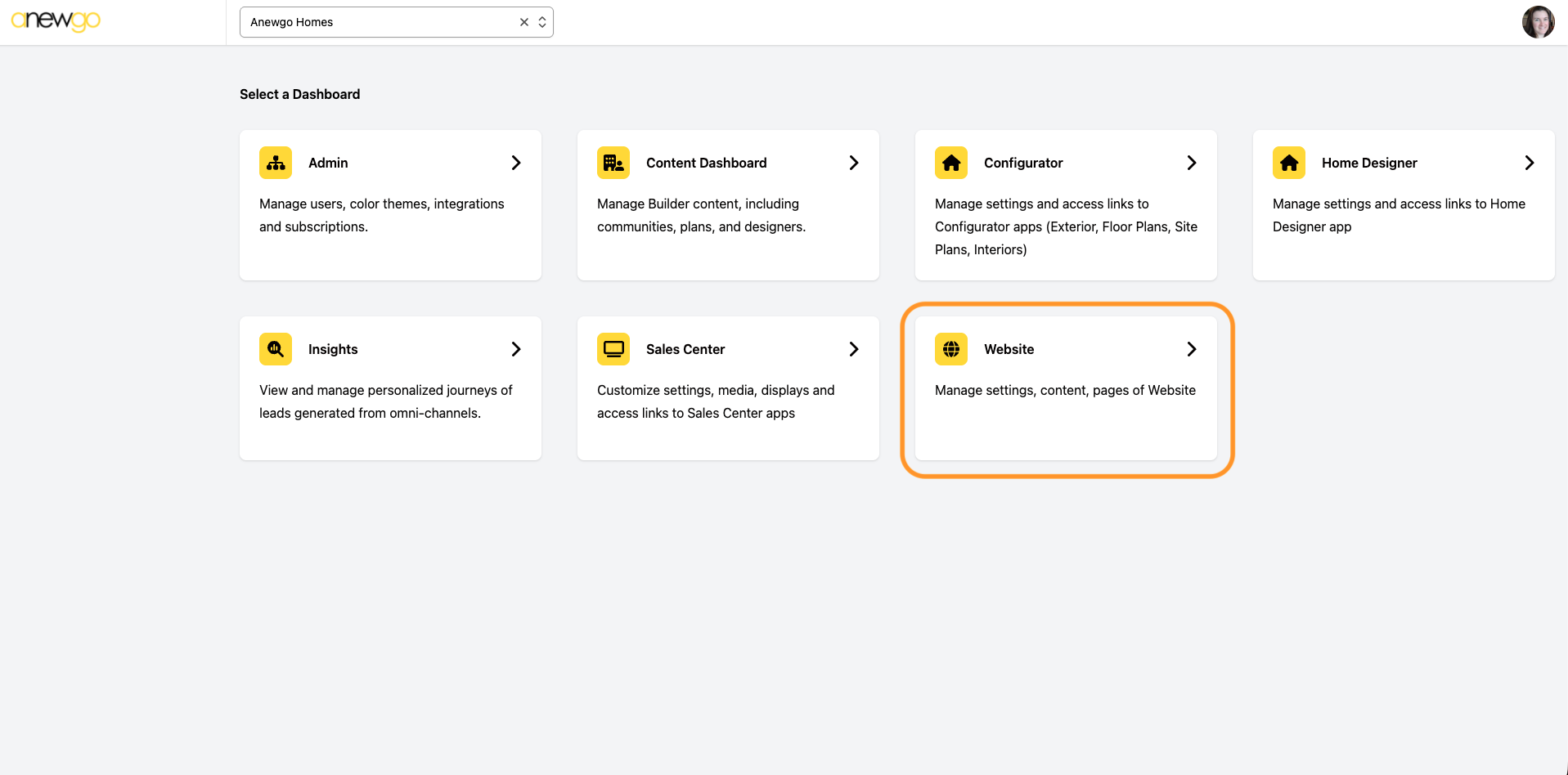 - Click Website card
