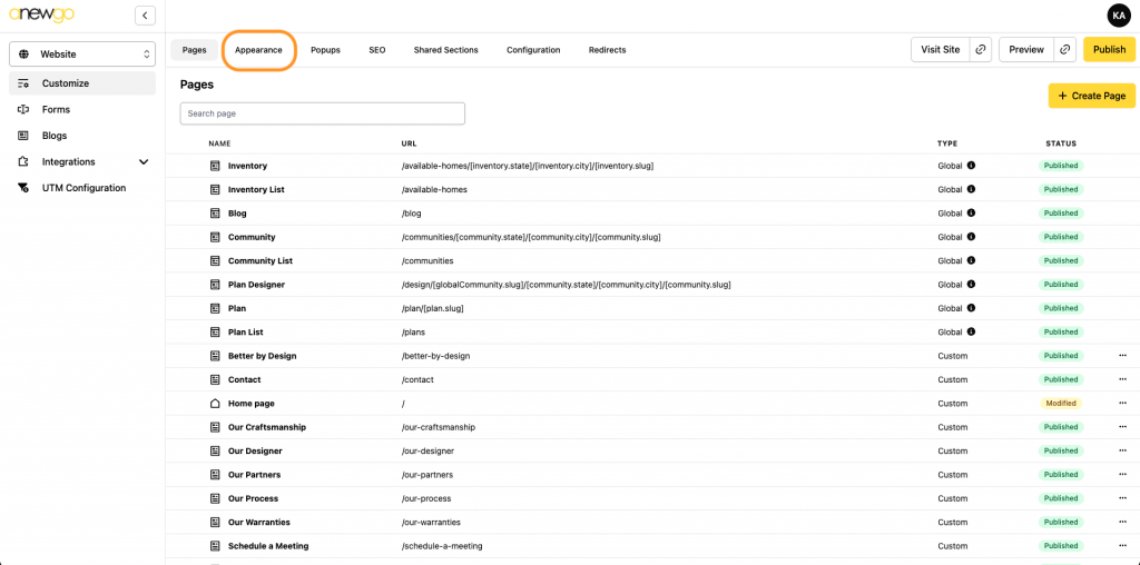 2. Click Appearance
