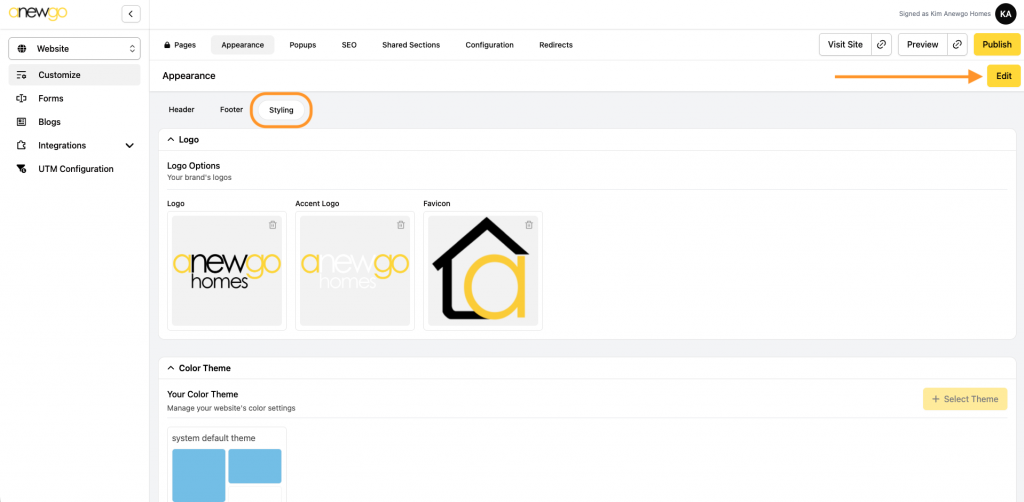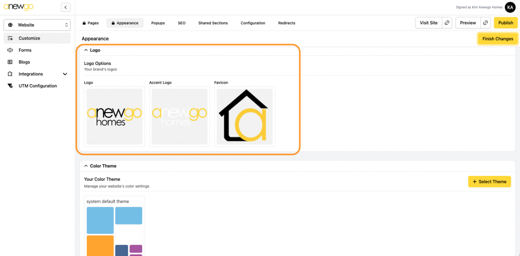 4. In the first section, you can edit your Logo, Accent Logo and Favicon.