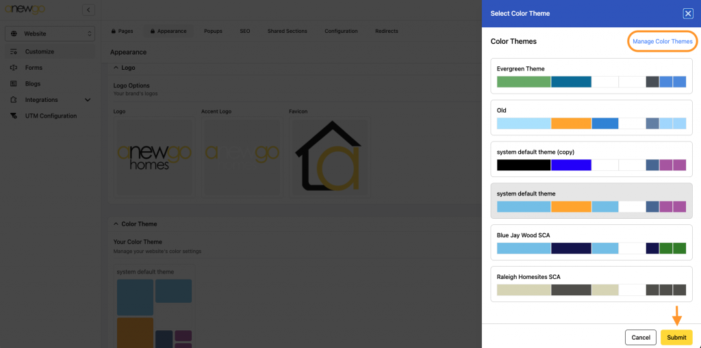 6. Make your changes and be sure to click Submit to save your changes. Or click Manager Color Themes to add/edit your themes – See this tutorial on how to add/edit color themes.