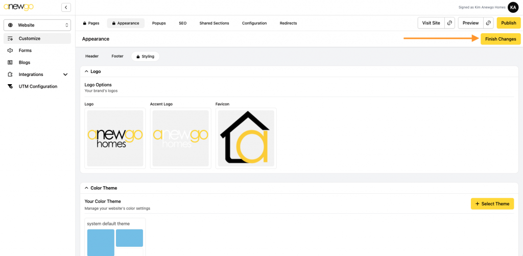 Be sure to click Finish Changes when you are done! Click Publish to see your updates on your live site. And remember you can check your Preview as you work to see how everything is looking before publishing.
