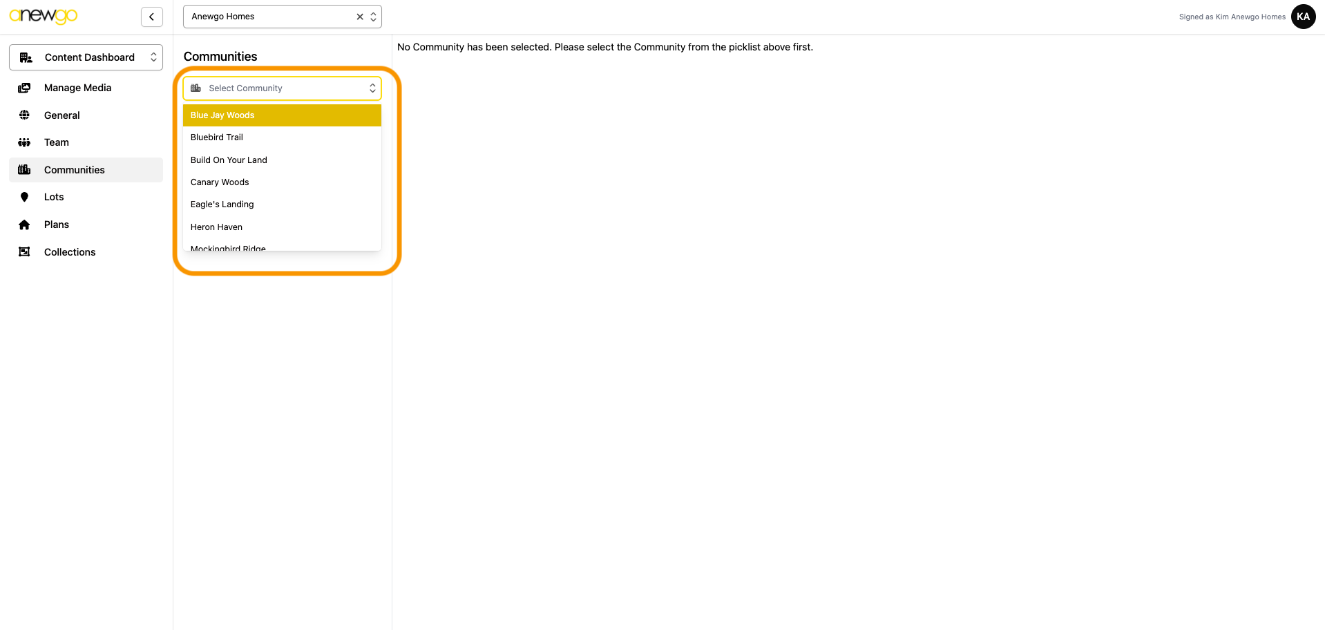 3. Select the community from the drop down.
