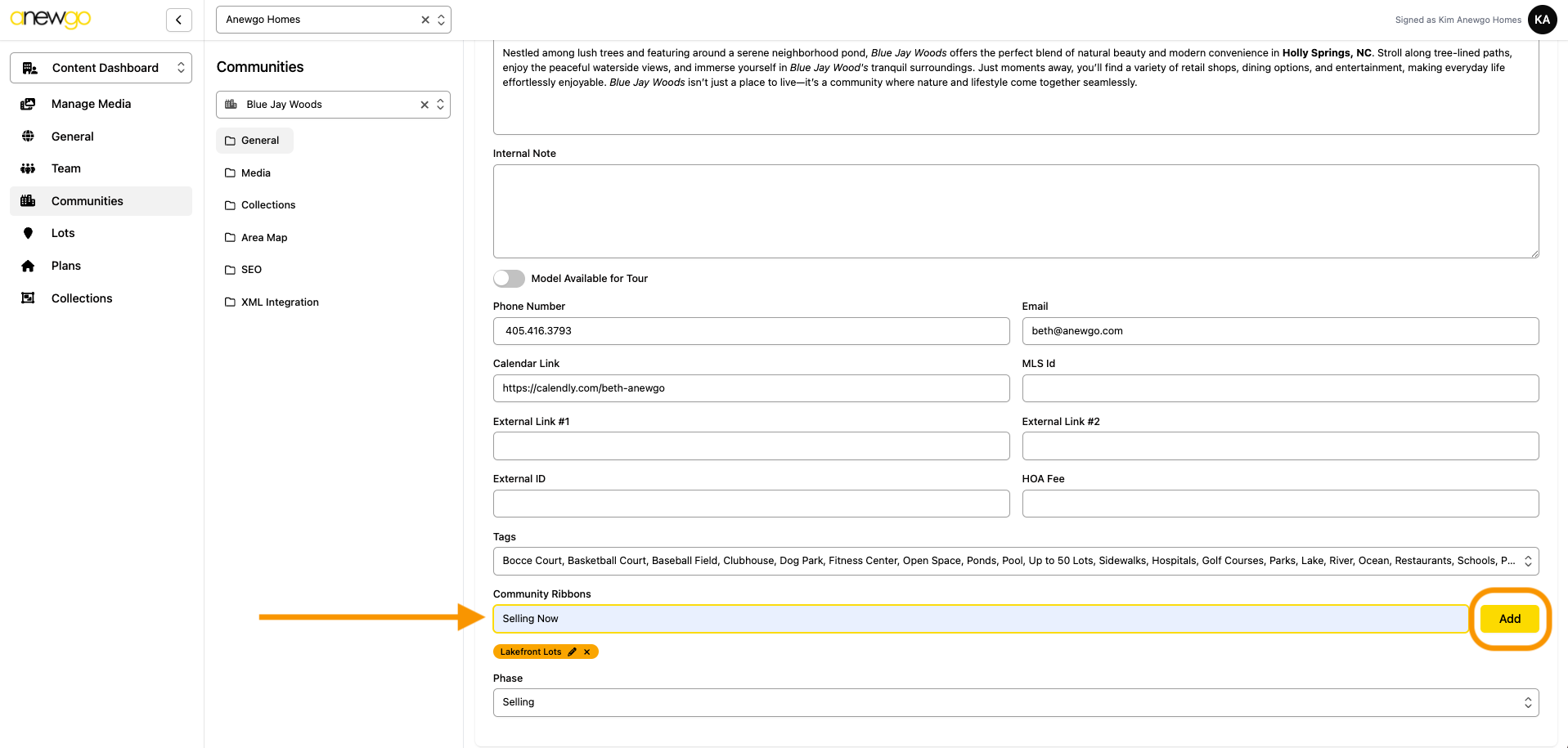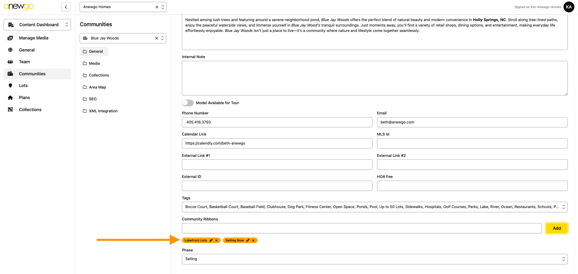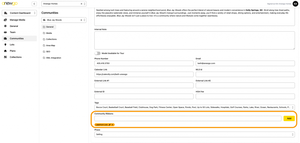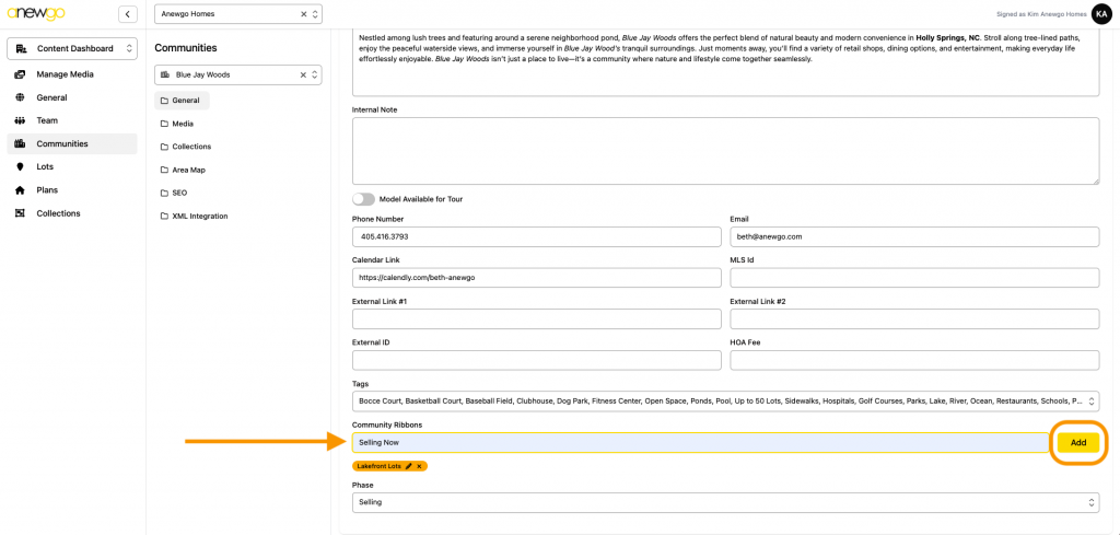 *Note – ribbons can be updated here, but most other updates to Lots still need to be done in the 2.0 backend dashboard (i.e. adding lot info, assigning an elevation, adding photos, etc).