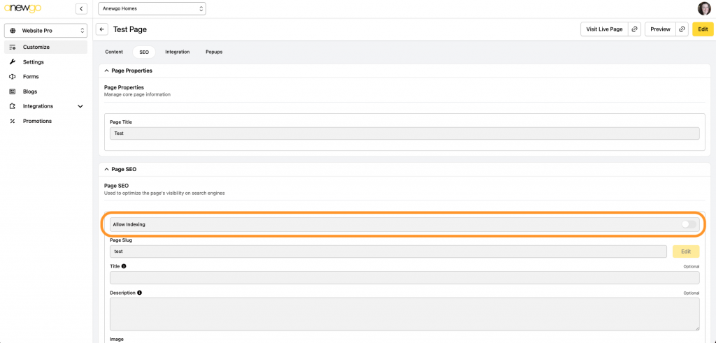 Index Status (Critical): Ensure ‘Allow Indexing’ is set in your settings. If search engines can’t index the page, then it won’t be ranked at all