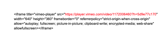 With Vimeo, you will need to copy the entire link and paste it to a doc to get the player link needed (see red text below)
