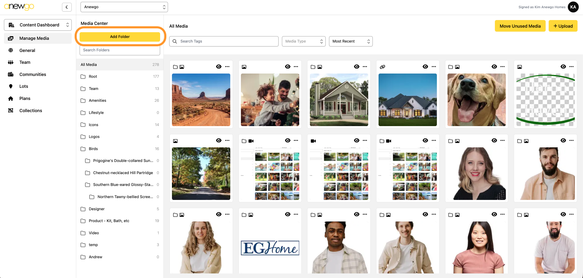 2. To best keep your media organized, we do recommend starting with creating Folders. Click Add Folder