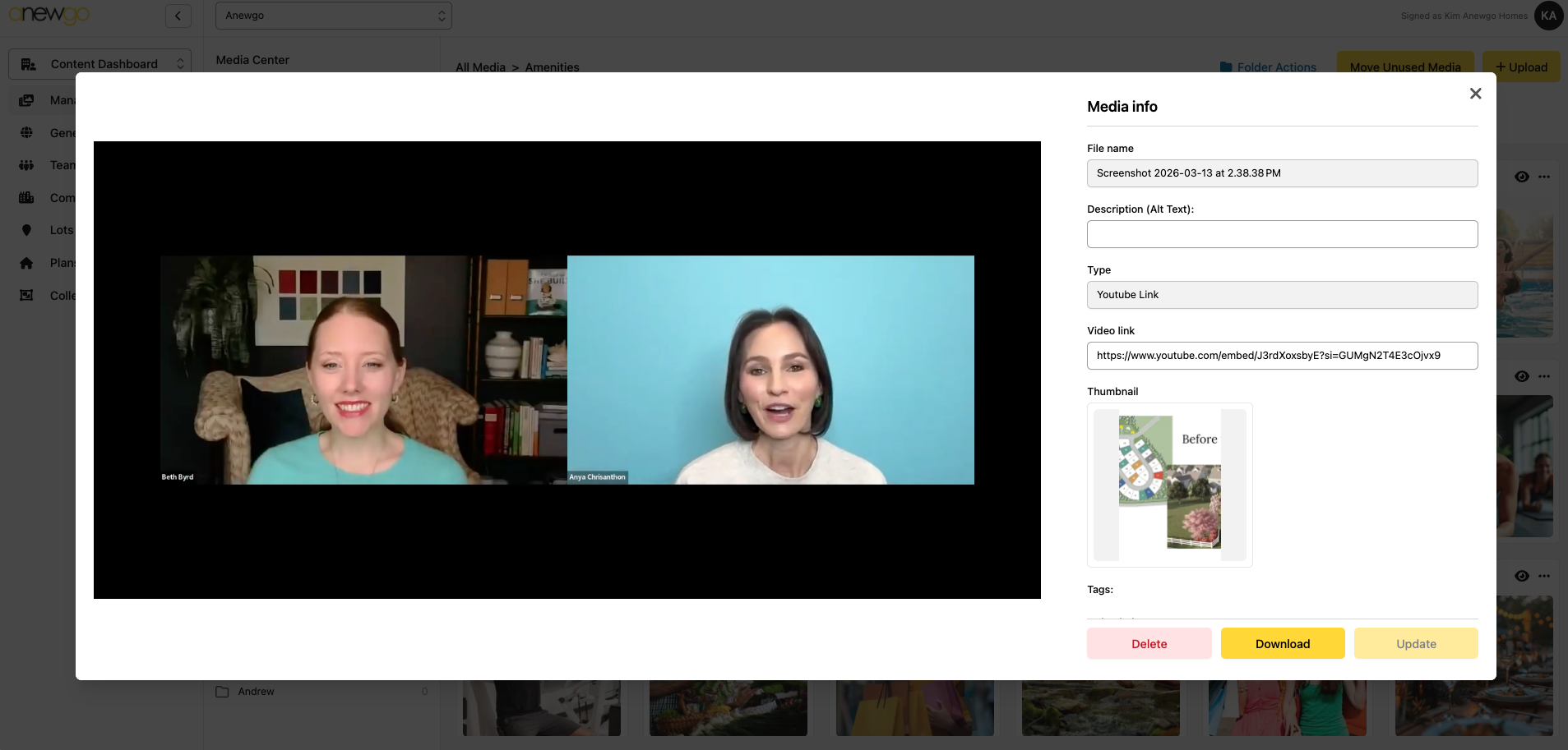 Note: the Manage Media module will also pop-up and be accessible as you work within the different products/apps
