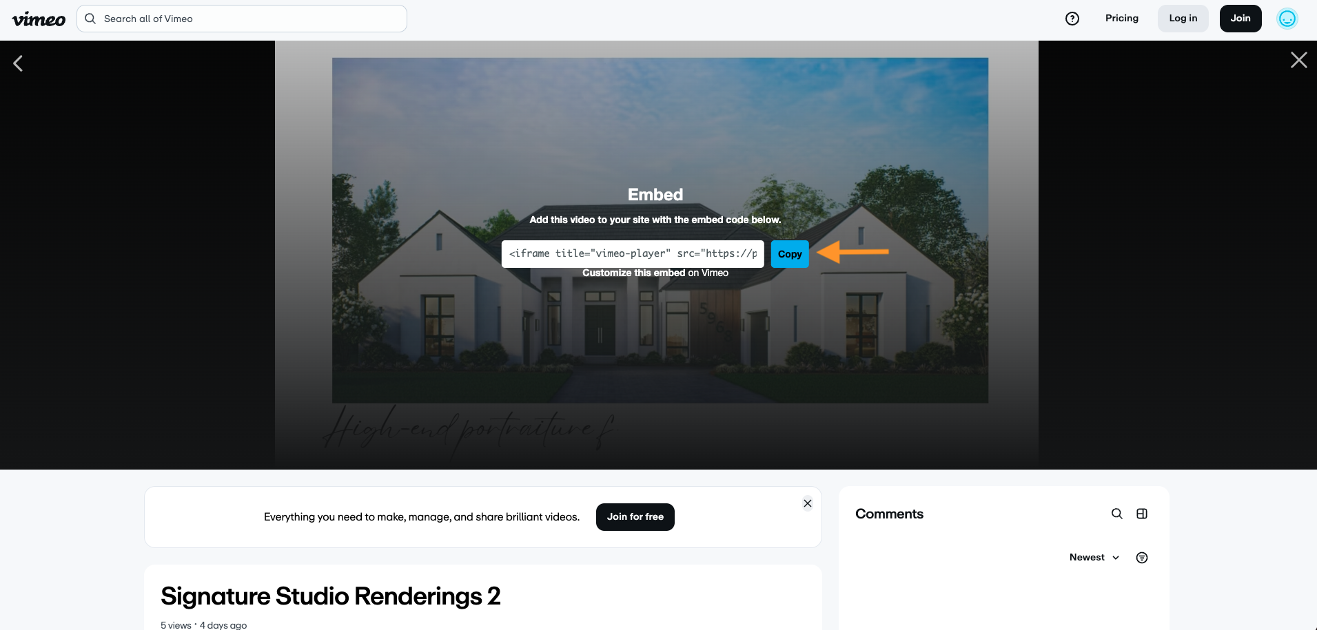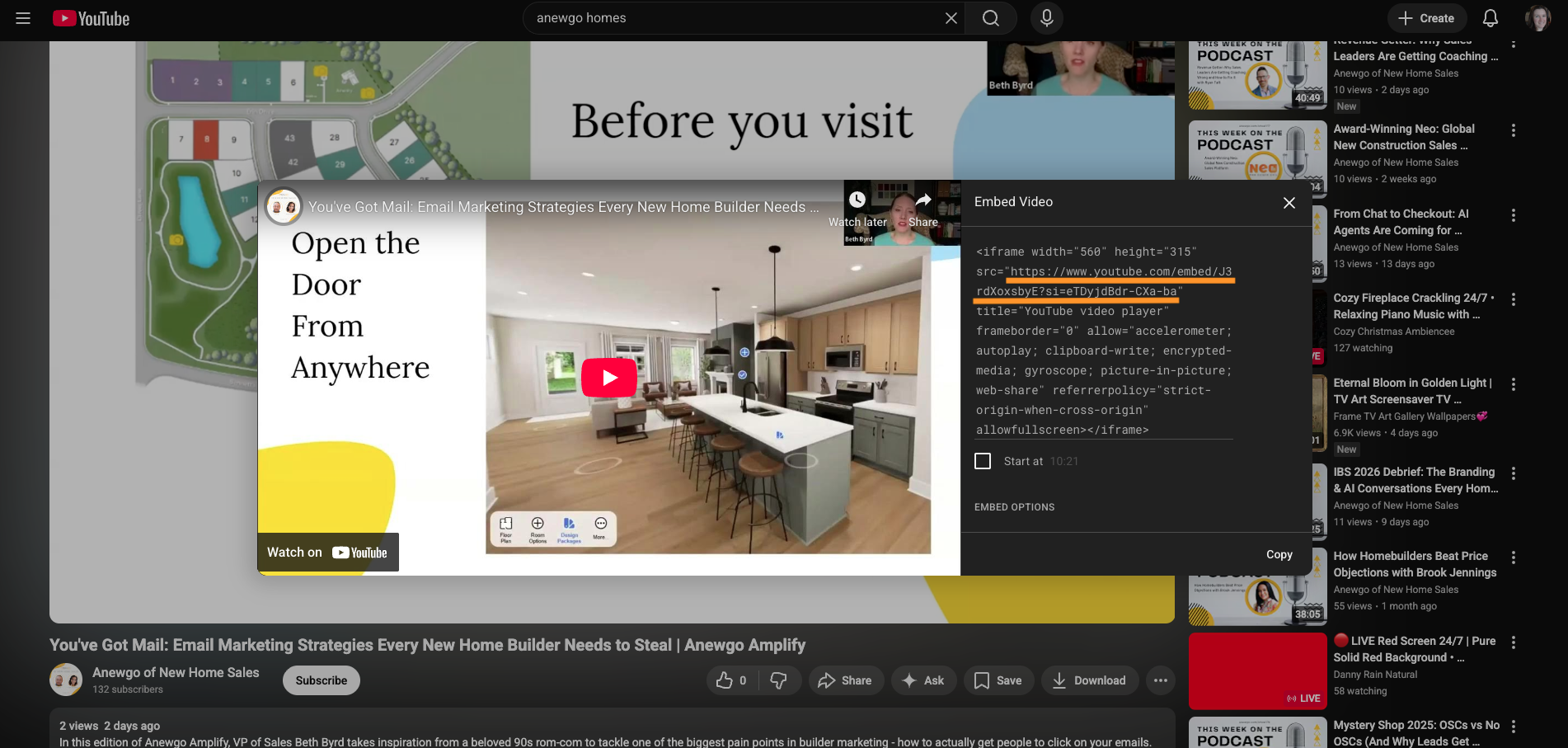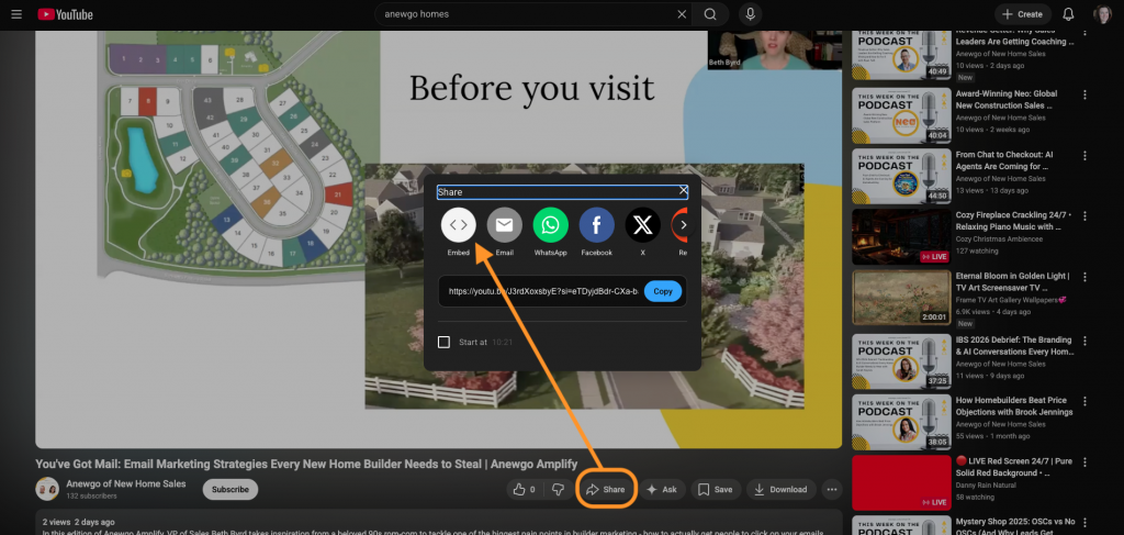 Now, you only need the player link from inside this full link (see the orange underline in photo). To get this link, you may need to copy & paste the enter embed link to a doc and then copy the player link from that (see red text below).